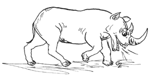 Ein Nashorn und ein Martinshorn die rasten sich entgegen. Das Martinshorn heult auf vor Zorn, ums Tier hinwegzufegen. Da hat das Nashorn sich geduckt und hat den Peterwagen samt Horn und Polizei verschluckt.