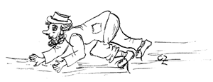 Nun sucht er nach Kompaß und Brille.